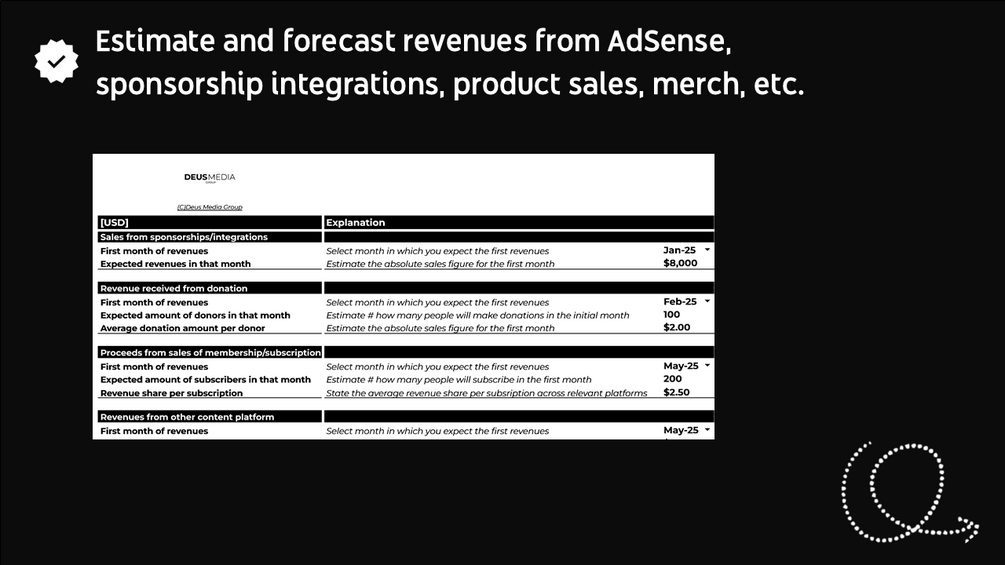 - The Financial Model: Fully editable, ready-to-use spreadsheet tailored to the YouTube ecosystem.