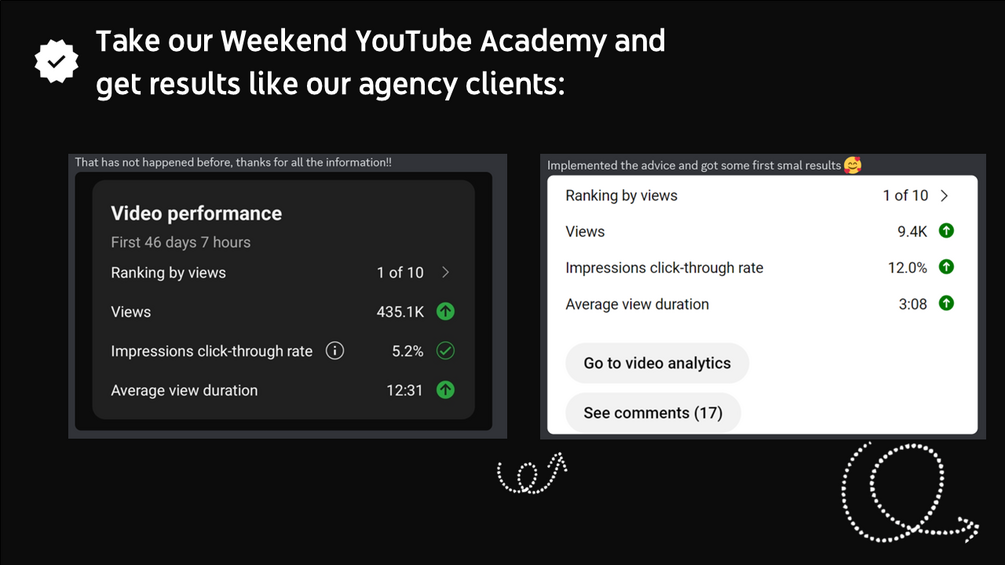 Stop wasting time on trial-and-error. Enroll in the Weekend YouTube Academy and build a thriving channel in just a few days.